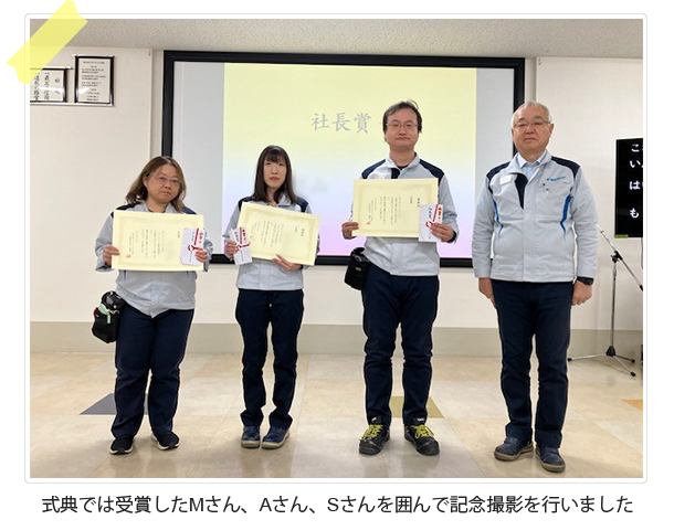 栄えある業務改善提案社長賞は、2025年の提案で生産の向上に大きく貢献したテーマが選ばれます。